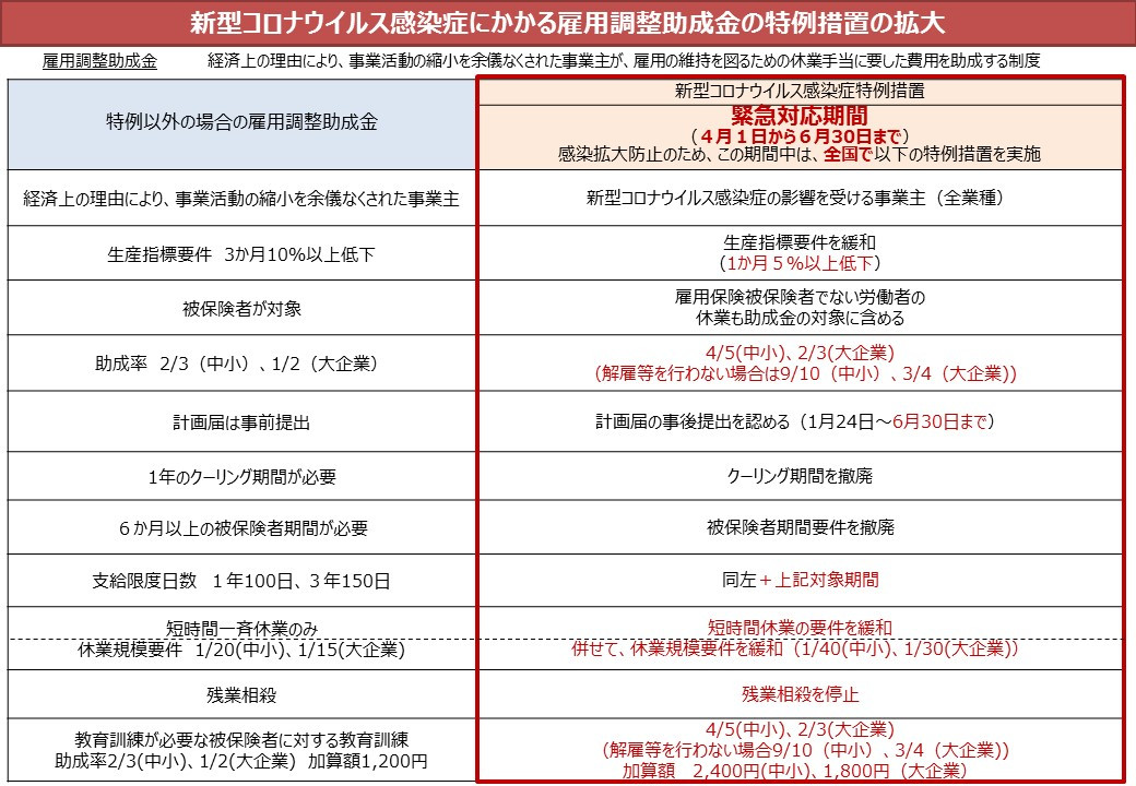 雇用調整助成金の生産指標要件が緩和されました。